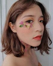 2. 眼妆:用眼影盘中的颜色,描绘出花朵的轮廓,再用液体眼线笔勾勒出眼线的细节。