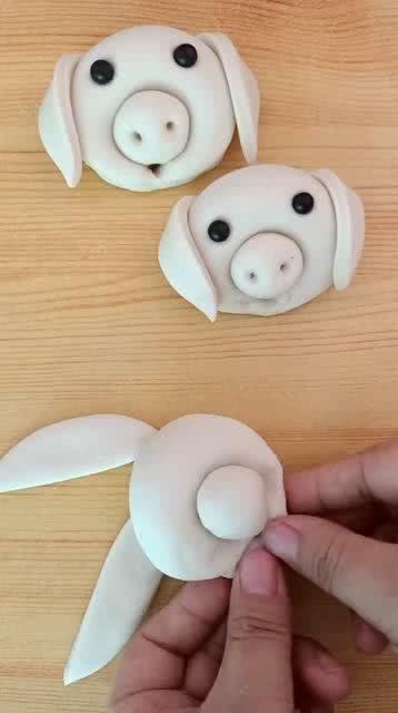 4. 塑形:将小面团搓成椭圆形,然后用拇指在中间按出一个凹槽,形成小猪的嘴巴。接着,用筷子在嘴巴两侧戳出两个小洞,作为小猪的眼睛。