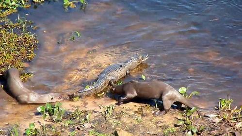 水獭,这个生活在水边的可爱动物,以其独特的生存智慧而闻名。它们擅长游泳,捕食技巧高超,是自然界中的捕猎高手。这次它们面对的对手,却是鳄鱼——这个在水中称霸的凶猛生物。